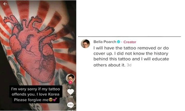 Despite the dark history behind the symbol it had inspired logos product designs and art just like Poarchs tattoo. Heres the complete explanation of the Bella Poarch tattoo controversy including the CancelKorea drama an apology for the Red Rising Sun tattoo and the Philippines outrage. Bella Poarch has apologized following the backlash from Korean netizens who were offended by her controversial Rising Sun tattoo.
